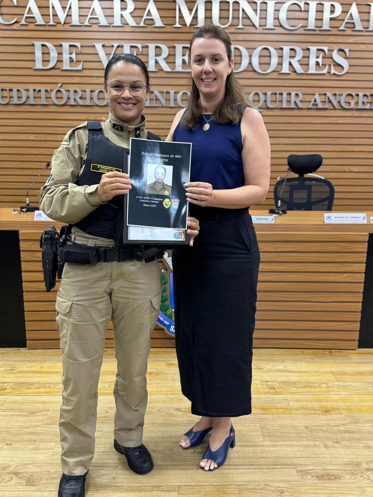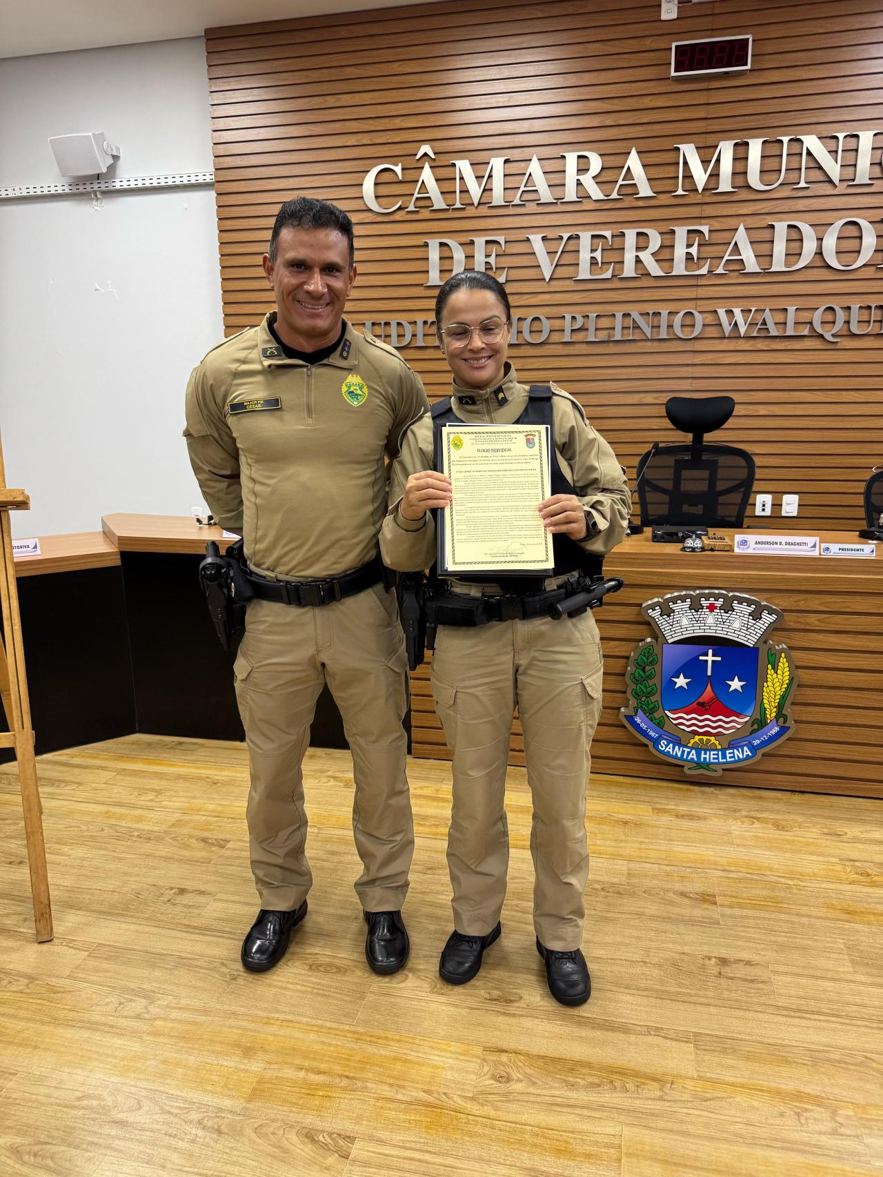 Na manhã desta quinta-feira (13), foi realizada nas dependências da Câmara Municipal de Vereadores de Santa Helena a cerimônia de entrega do certificado de elogio individual, a 3ª Sargento Angelina Camargo, além de ser destaque do mês de março.