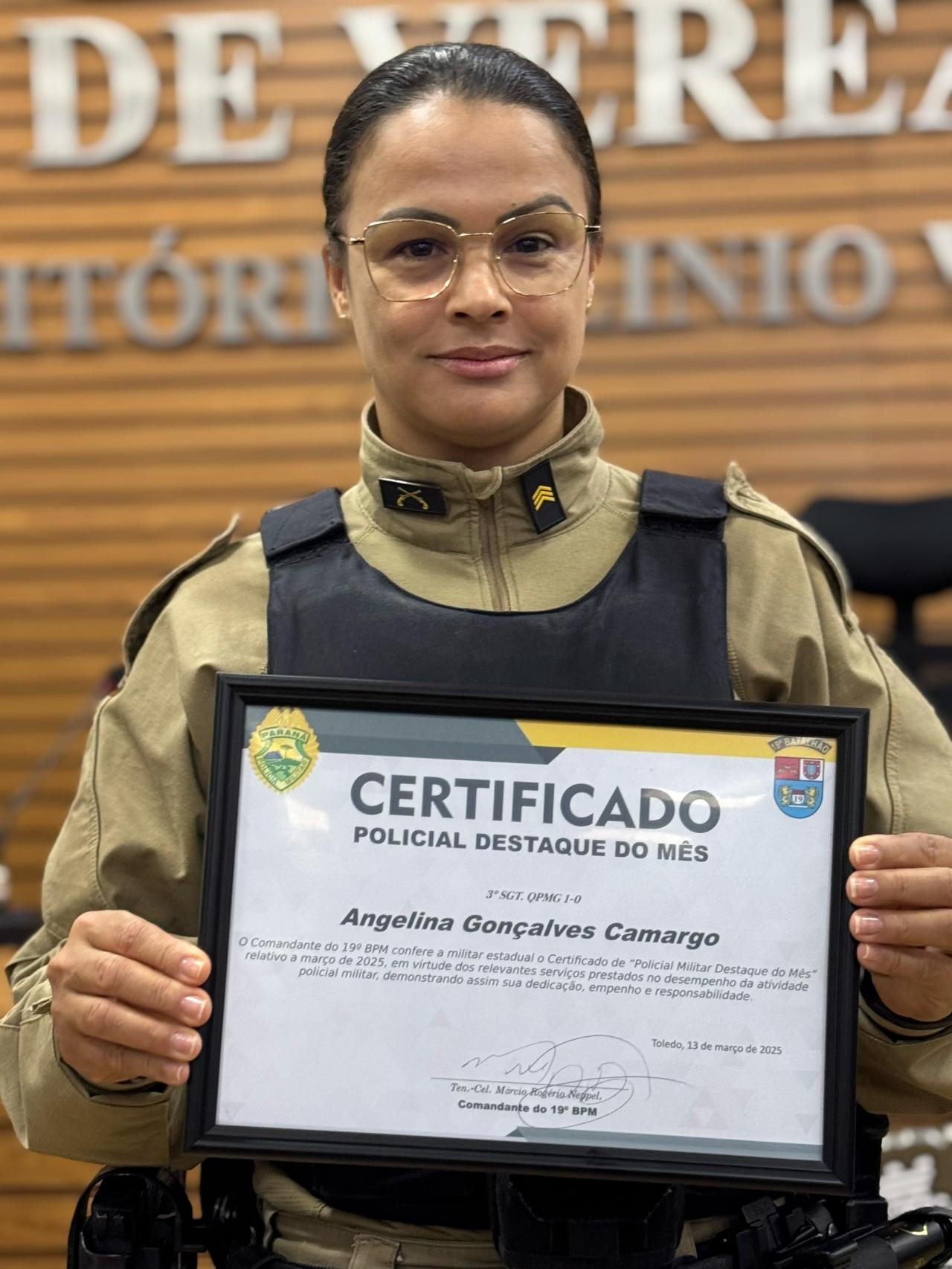O comandante do 19º BPM de Toledo, Tenente-coronel Marcio Rogério Nepel, detalha que a Sargento Angelina é referência como policial, acumulando funções dentro da corporação, se dedicando a profissão e a sua família.