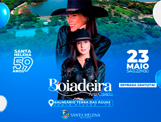 Após o anúncio da apresentação de Ana Castela como atração principal das comemorações dos 59 anos de Santa Helena, com show marcado para o dia 23 de maio, às 22h30, no Balneário Terra das Águas, a programação do evento ganhou ainda mais destaque com a confirmação de uma nova atração.