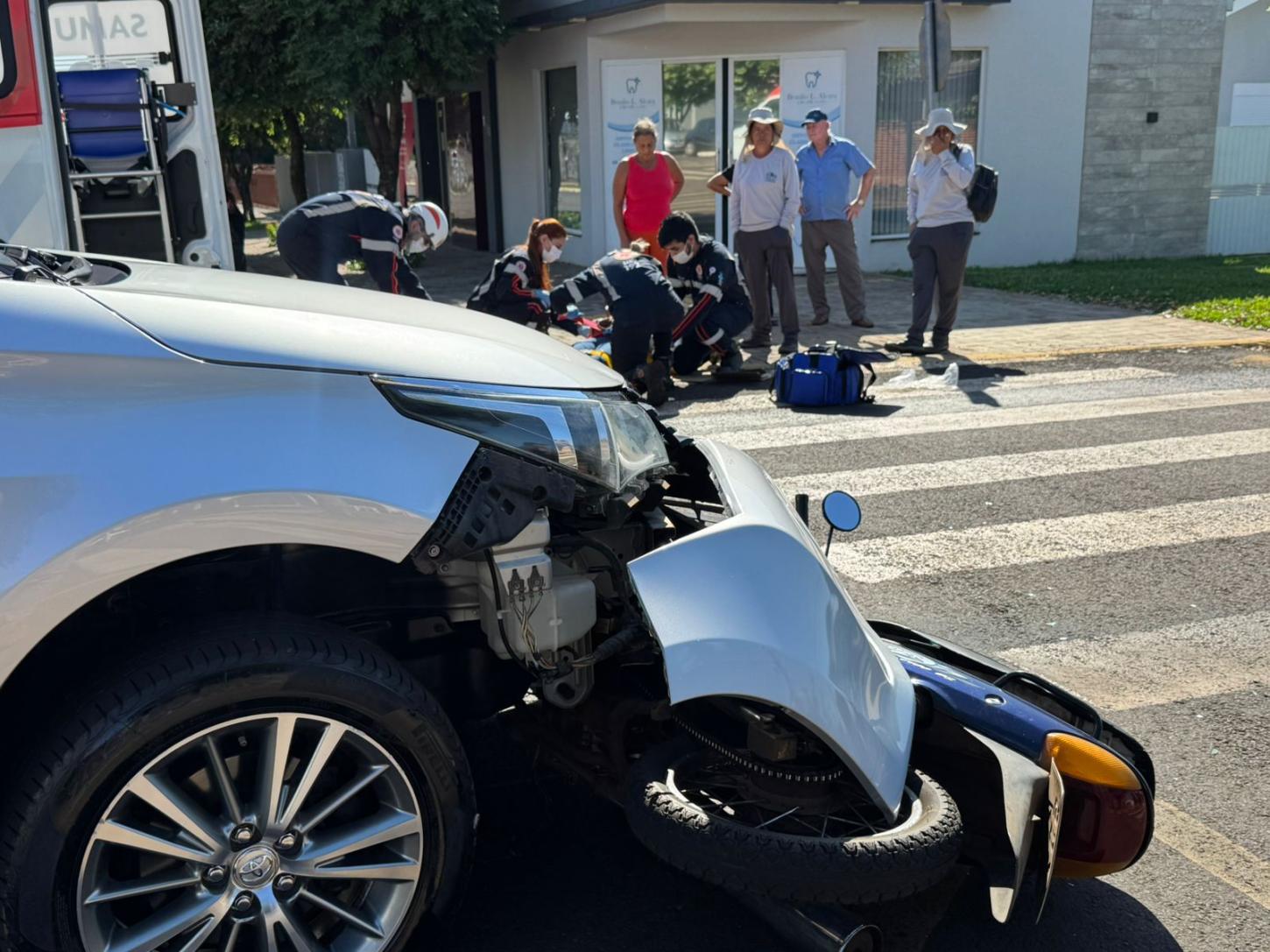 Segundo informações, a condutora da Honda Biz seguia pela Rua Paraguai e o Corolla trafegava pela Rua Brasilia, momento em que houve a colisão. Com a batida, a Biz parou embaixo do veículo e a motociclista foi ao solo.