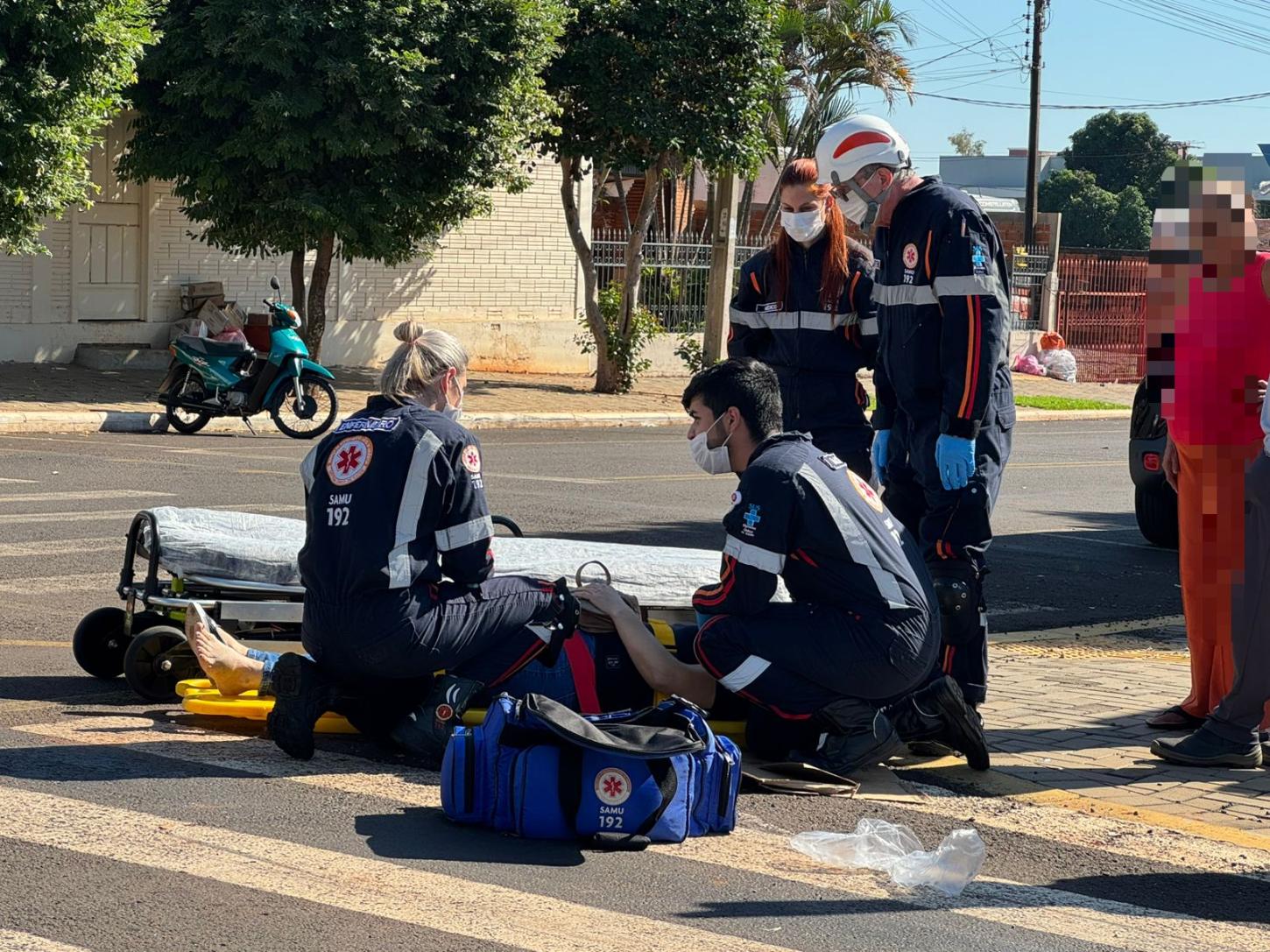 Ela sofreu escoriações pelo corpo, sendo necessário o atendimento do SAMU e seu encaminhamento ao hospital para avaliação médica. O conduor do automóvel não se feriu.