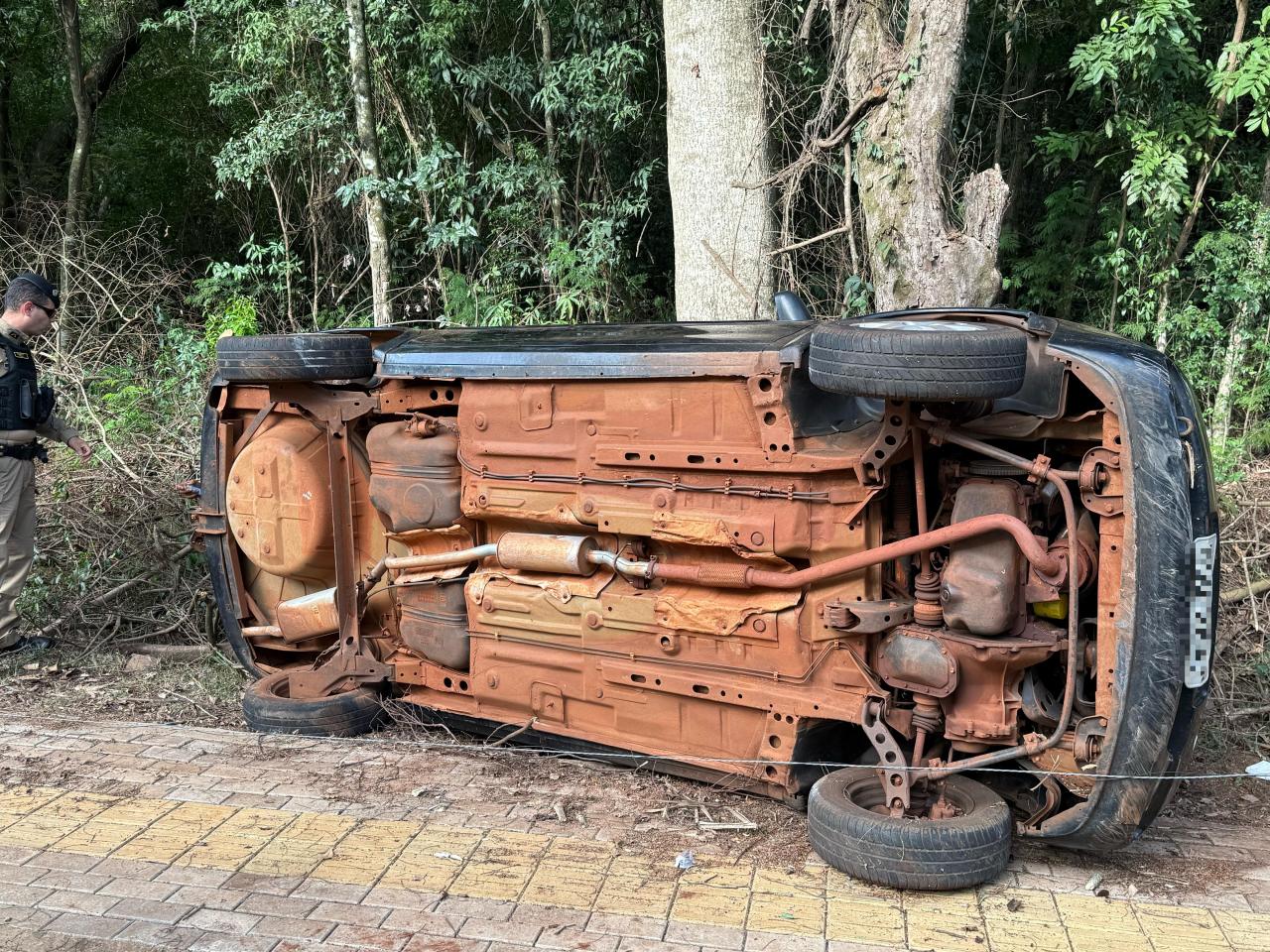 Segundo as informações, o condutor de um GM Corsa Sedan, seguia sentido cidade ao distrito de Sub Sede, quando acabou perdendo o controle do carro que tombou na lateral da pista.