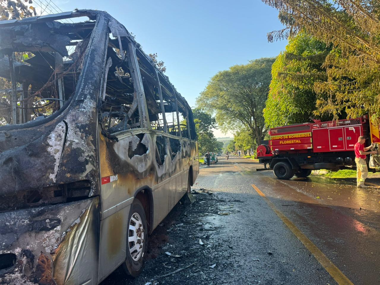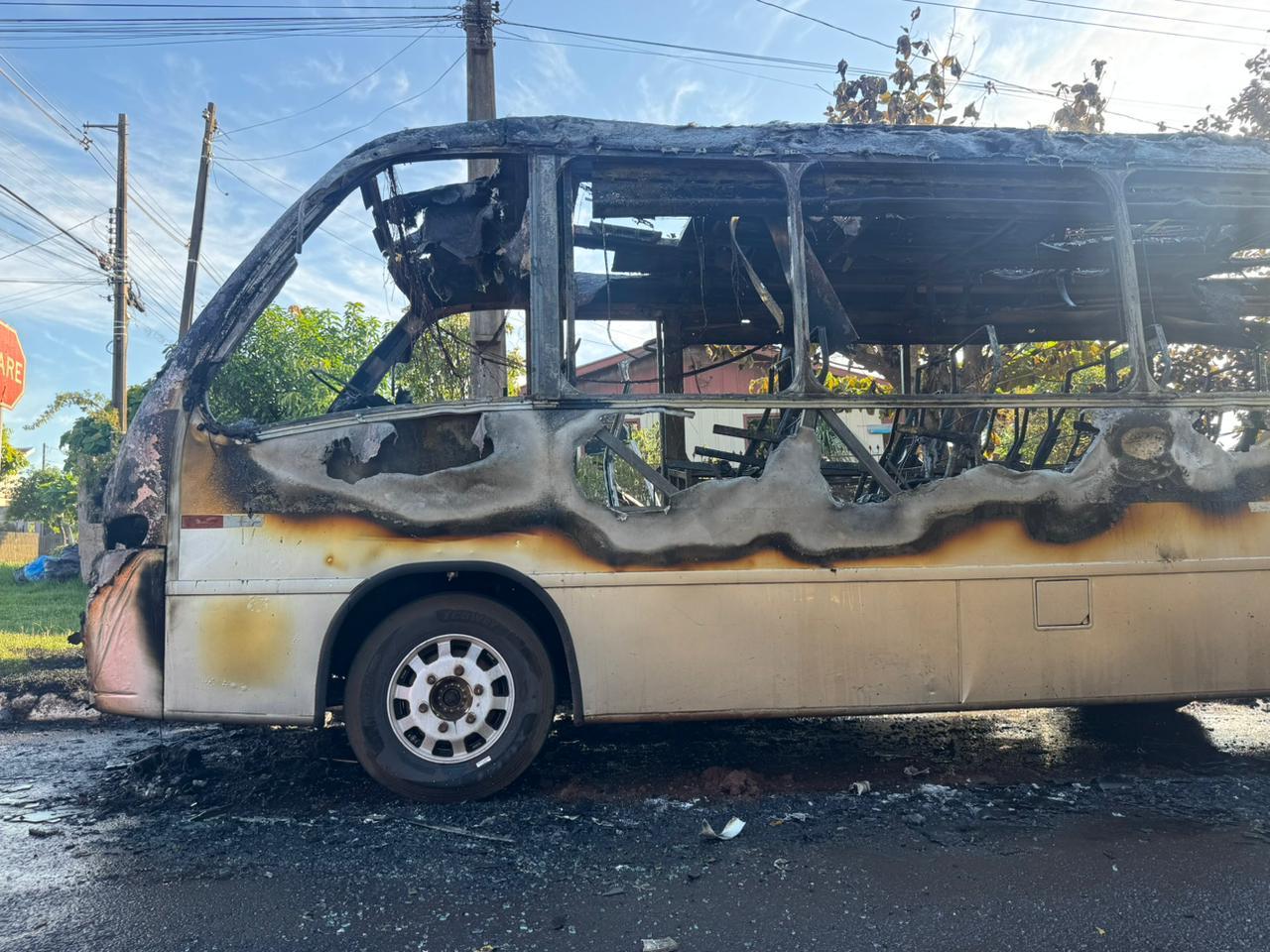 Um incêndio em um micro-ônibus mobilizou equipes do Corpo de Bombeiros e Defesa Civil de Santa Helena, na manhã desta quinta-feira (23), no bairro Cidade Alta.