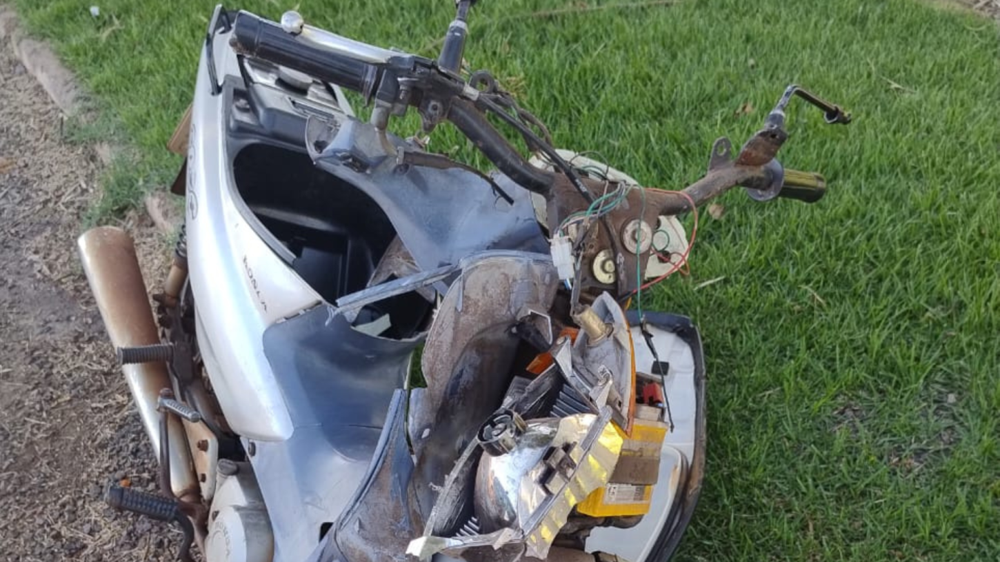 Uma batida entre uma motocicleta e uma carreta deixou uma mulher gravemente ferida por volta das 7h10 da manhã desta terça-feira (25), em Itaipulândia. O acidente aconteceu na Avenida Nossa Senhora Aparecida, próximo a uma rotatória em frente ao silo, sentido Distrito de Santa Inês.