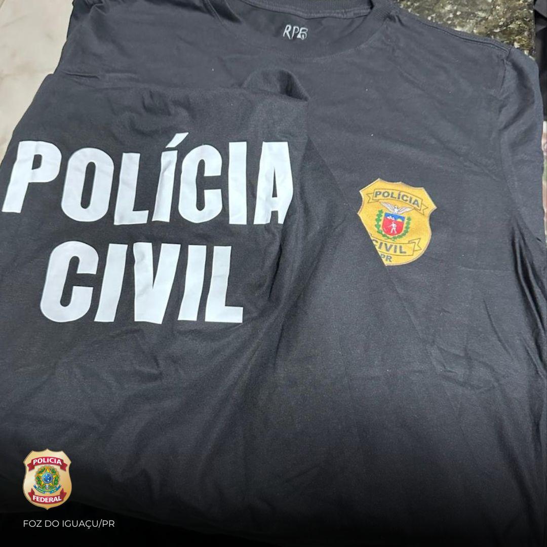 Durante o cumprimento dos mandados de busca e apreensão, foram encontradas diversas mercadorias estrangeiras, provenientes do Paraguai, na residência de um dos alvos, além de um simulacro de arma de fogo e uniformes ostensivos da Polícia Civil.