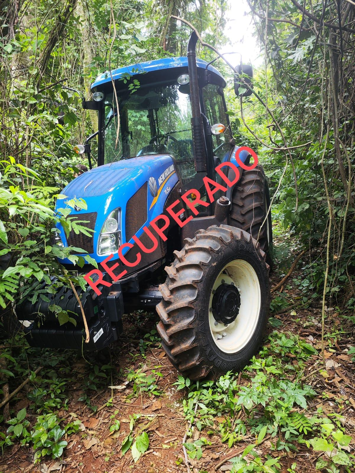 Durante as diligências, a equipe realizou buscas na região indicada, sendo constatado que o acesso mais próximo à área apontada pelo GPS se dava por uma propriedade rural. No local, foram identificados rastros compatíveis com os de um um trator, os quais conduziram até uma área de mata, onde o veículo foi localizado aproximadamente 80 metros mata adentro.