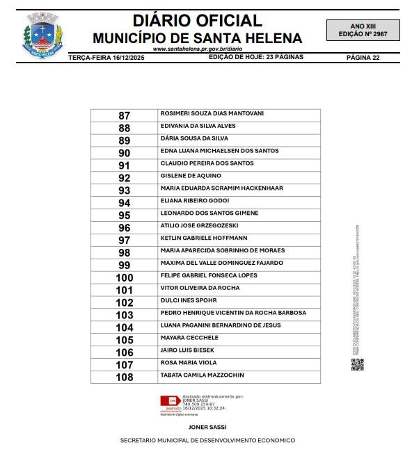 A Secretaria Municipal de Desenvolvimento Econômico divulgou nesta terça-feira (16), o resultado do sorteio para reserva dos quiosques no Balneário Terra das Águas durante o Réveillon 2025/2026.